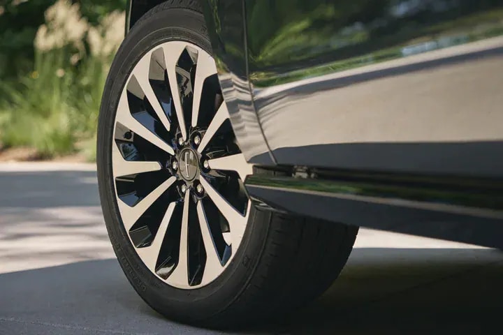 Bold, anchoring design. The Lincoln Reserve model features available 22” 12-spoke black aluminum wheels. The powerful turbine design adds grounding presence to the exterior as dynamic design lines echo the ethos of quiet flight.
