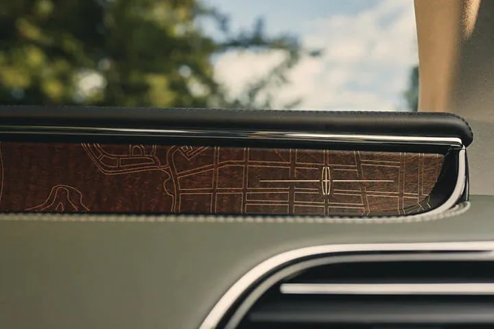 Add natural beauty to your interior sanctuary with hand-selected wood inlays chosen from a single piece of timber to ensure elegant grain lines. The genuine wood trim on the front center console and wood inserts integrated into the dashboard adds a luxurious touch. Each Lincoln Black Label theme features a unique wood applique: walnut for Central Park, khaya for Invitation, Silverwood for Chalet and whitewashed teak for Yacht Club. Espresso ash swirl and Santos rosewood are integrated in Standard and Reserve models.